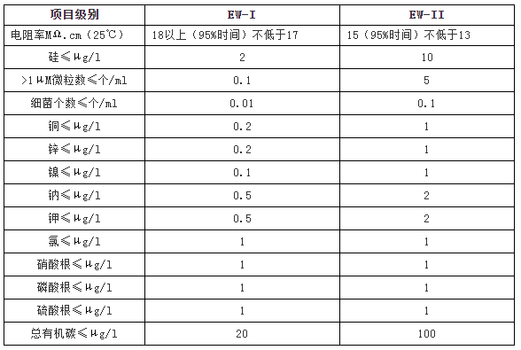 电子级超纯水中国国家标准(GB/T11446.1-1997)